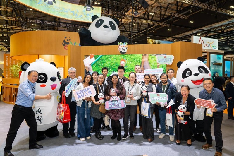 在展会的重要环节”中国之夜”推广活动中,四川展区凭借其独具特色的非遗和熊猫文创展示、精美的影像资料和互动,成为全场瞩目的焦点。诸多富有四川特色的文化展示,吸引了众多国际买家和媒体的驻足交流,实现了四川文旅在国际舞台上的又一次精彩亮相。