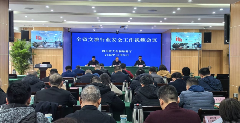2025年12月26日,文化和旅游厅召开全省文旅行业安全生产暨今冬明春消防、森林草原防灭火工作和2025年四季度厅安委会暨省文化旅游安全生产专业委员会(以下简称省专委会)工作会议,集中观看中央安全生产考核巡查组来川考核反馈问题隐患专题片和全省安全生产暗访突出问题专题片(2025年),安排部署全省文旅行业今冬明春安全生产和消防、森林草原防灭火工作,省文化旅游安全生产专委会专家剖析风险隐患案例,成都市、阿坝州、乐山市文化和旅游部门围绕不同领域安全监管工作作交流发言。厅党组成员、副厅长,厅安委会常务副主任、省专委会主任王成平出席并讲话。会议由厅二级巡视员、厅安委会副主任邹健主持。