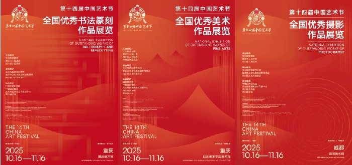 本届中国艺术节系列展览由文化和旅游部、重庆市人民政府、四川省人民政府等单位联合举办,全国优秀美术作品展览在四川美术学院美术馆展出,全国优秀书法篆刻作品展览在重庆美术馆展出,全国优秀摄影作品展览在四川美术馆展出。展览主题鲜明、内容丰富,以多元艺术形式铺展气象万千的时代画卷,生动诠释昂扬奋发的时代精神,对推动新时代美术事业繁荣发展具有重要意义。参展作品通过征集、推荐、特邀等方式遴选汇集,涵盖美术类作品510余件、书法篆刻类作品320余件、摄影类作品290余件。这些作品聚焦时代主题、植根火热生活,以丹青之韵、金石之趣、光影之美,传递真善美、传播正能量,将为广大观众献上精彩纷呈的视觉盛宴。