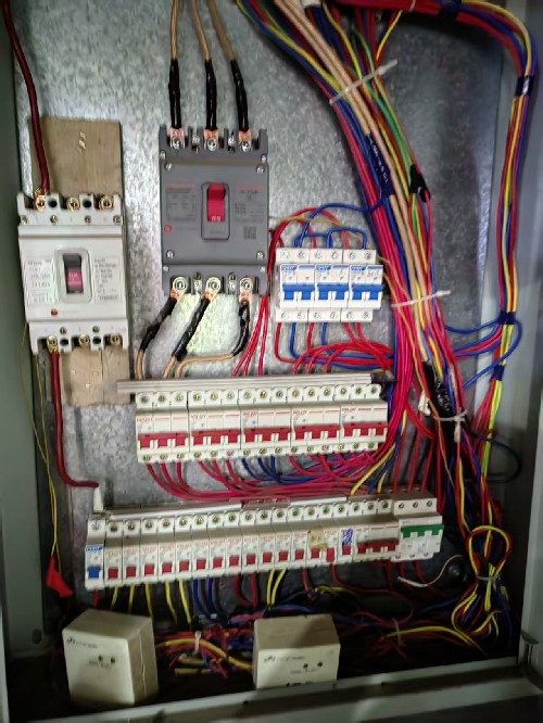 隐患问题:网吧电井内电源线敷设零乱,塑壳断路器裸露安装在墙壁上,外接进电线路不符合接电规范要求,开关无隔弧片,配电箱箱门未设置电气原理图、无PE跨接线;无接零接地排,消防输入输出I/O模块违规放置在配电箱内。