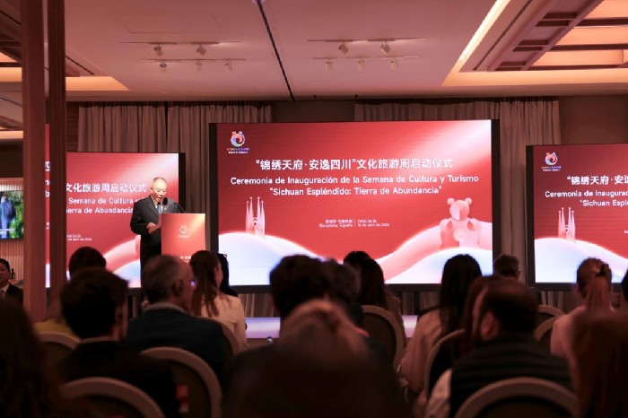为深化四川与西班牙在文旅体育领域友好交流合作,2026年4月16日下午,“锦绣天府·安逸四川”文化旅游周启动仪式在西班牙巴塞罗那举行,四川与西班牙的政府部门、旅游、航空、酒店协会和旅行商及相关企业代表约150人出席启动仪式。