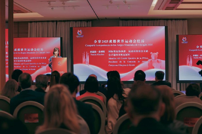 (国际世运协执委、运动员委员会主席、空手道奥运冠军桑德拉·桑切斯分享参加2025成都世运会经历)