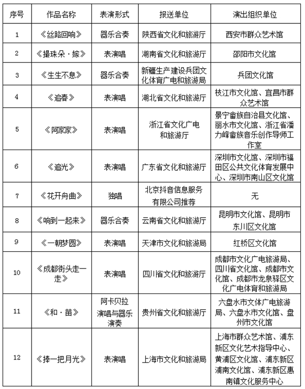 第二十届群星奖音乐终评分为两场:其中,15:00开始第一场角逐,18:30进行第二场角逐。来自全国各省、自治区、直辖市及新疆生产建设兵团,以及北京抖音信息服务有限公司层层遴选、推荐的共27个音乐作品依次亮相,呈现了一场高水准、多元化的群众文化艺术盛宴。
